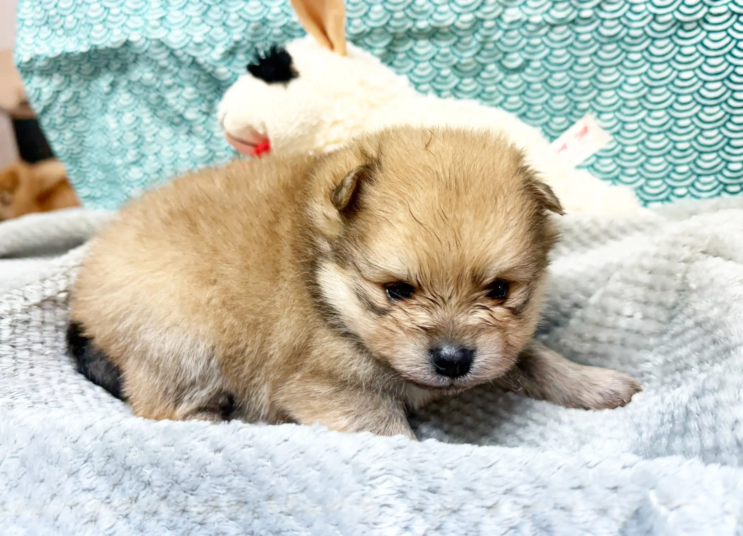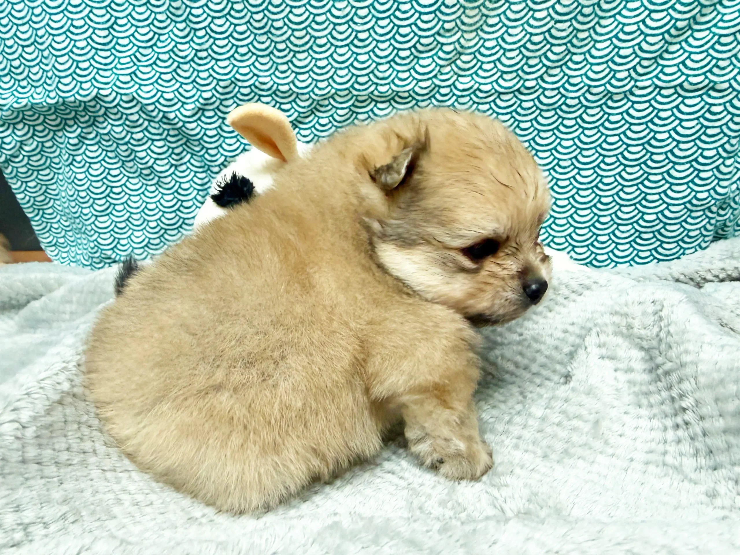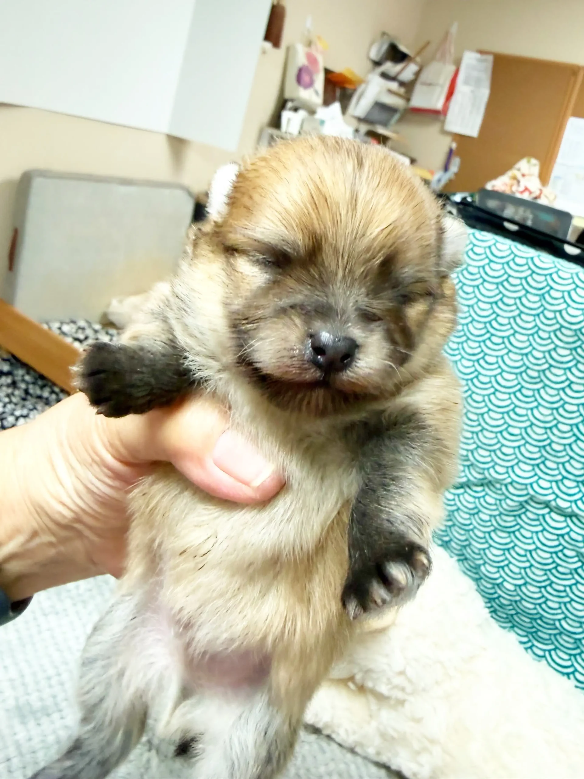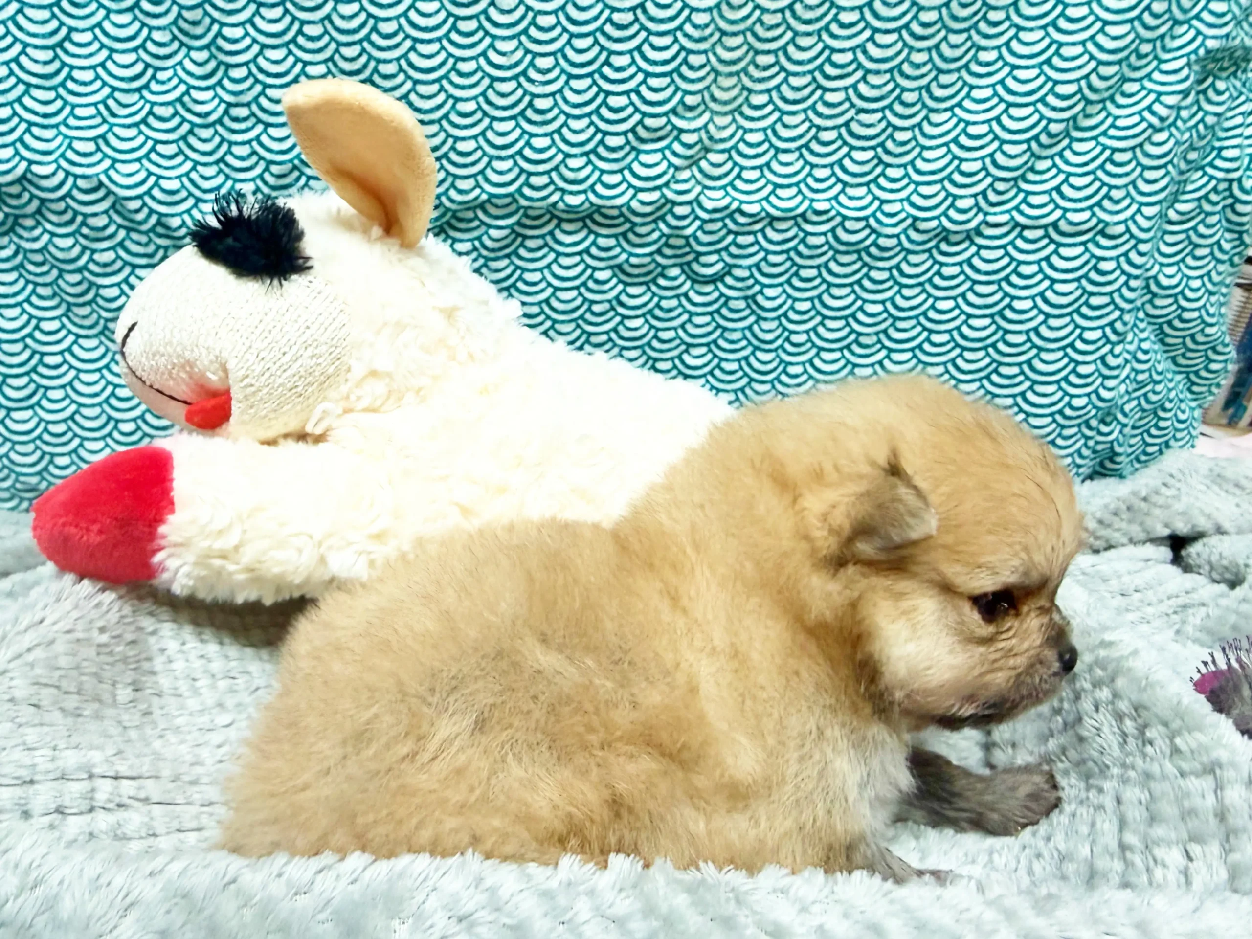 The Pomeranian puppies will not leave us until they are 8+ weeks old and totally weaned.