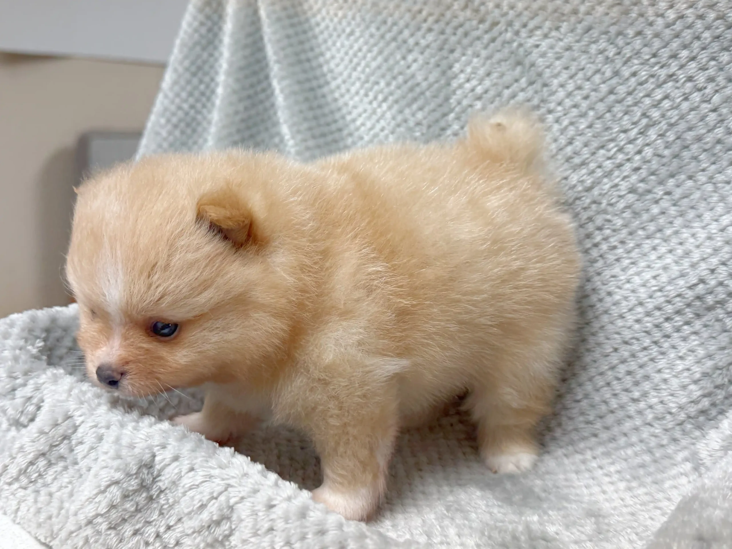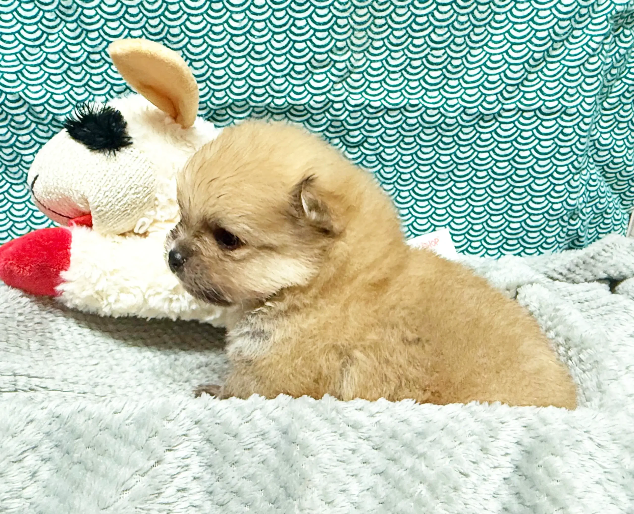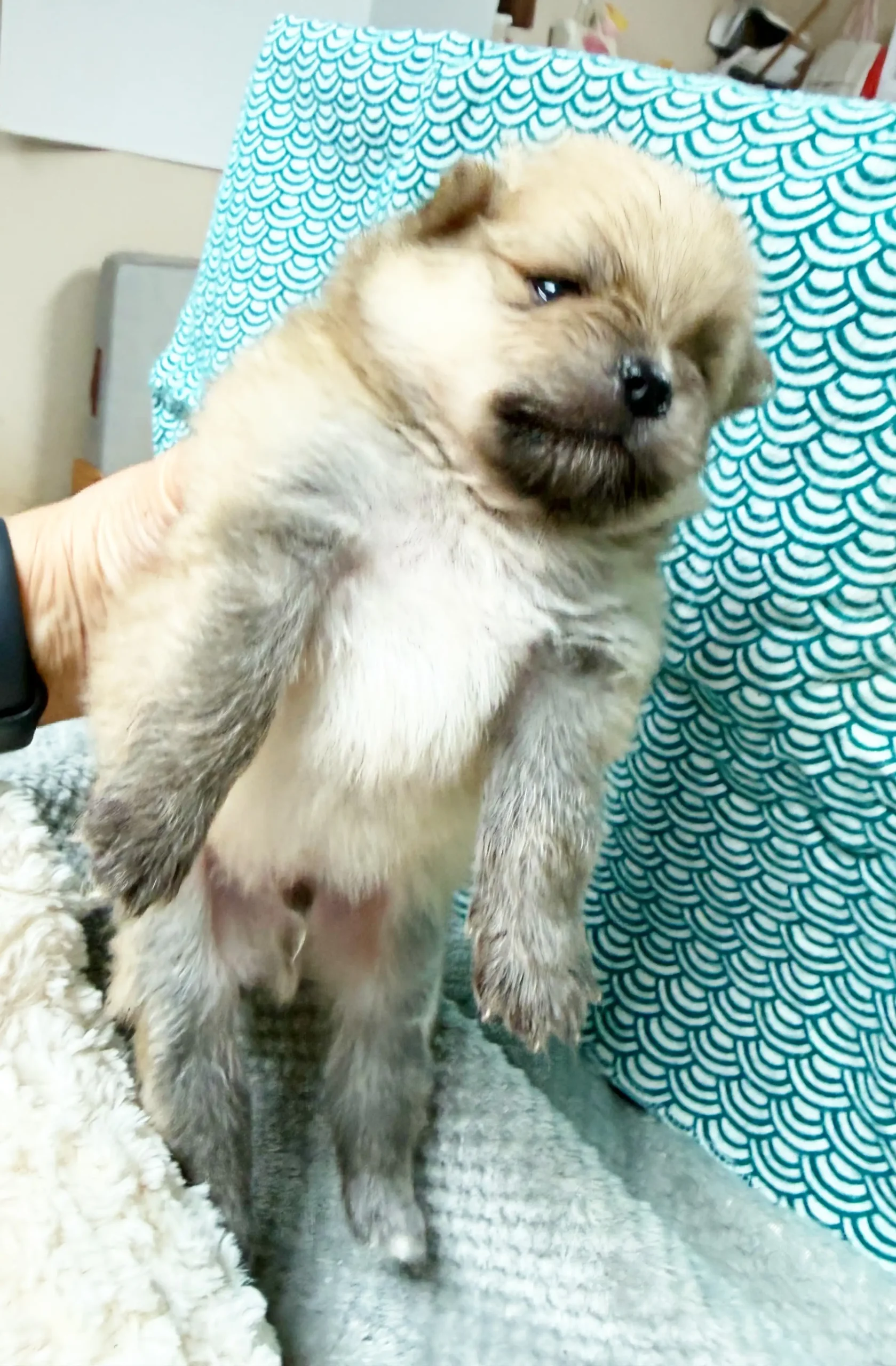 The Pomeranian puppies will not leave us until they are 8+ weeks old and totally weaned.