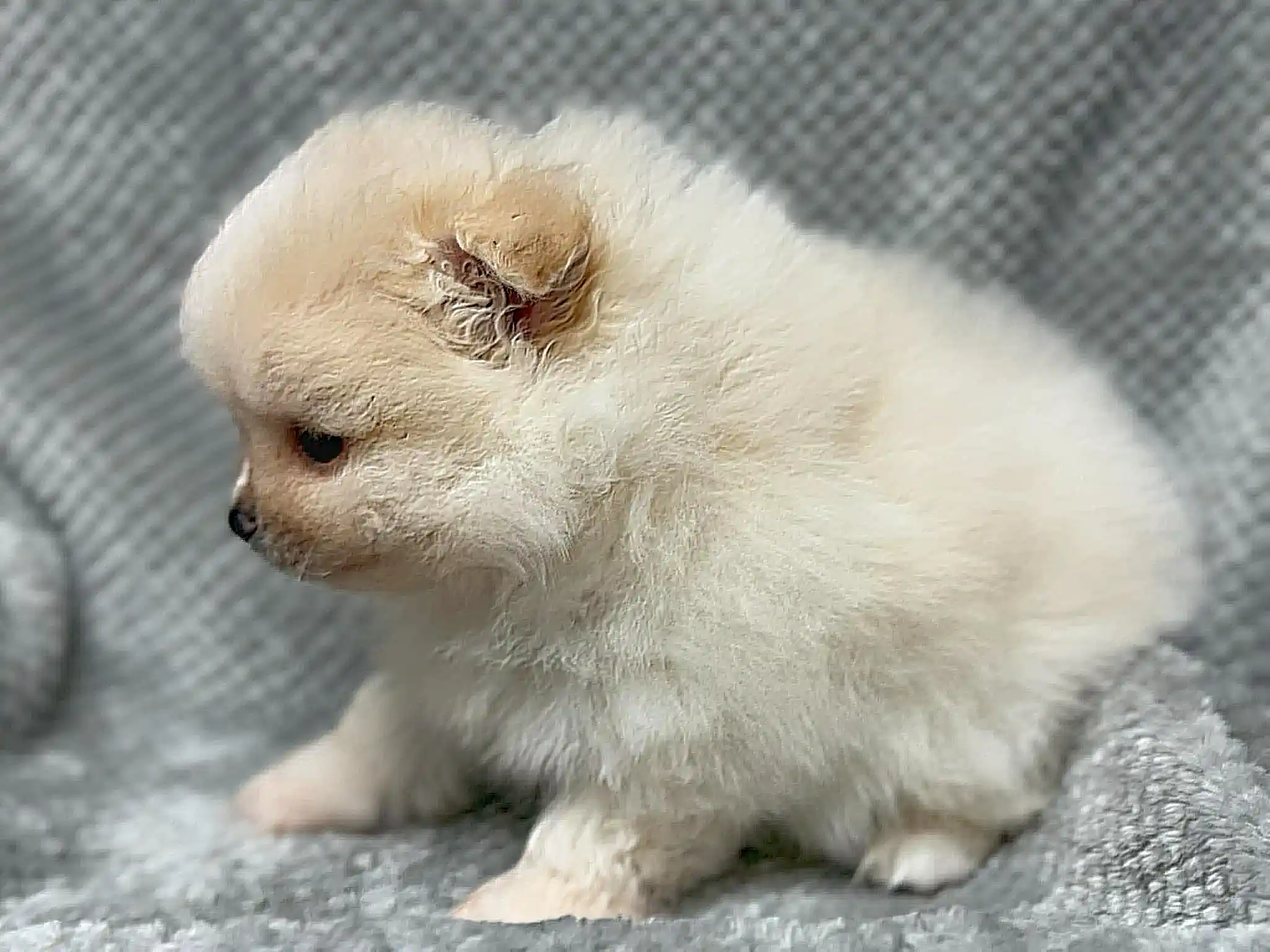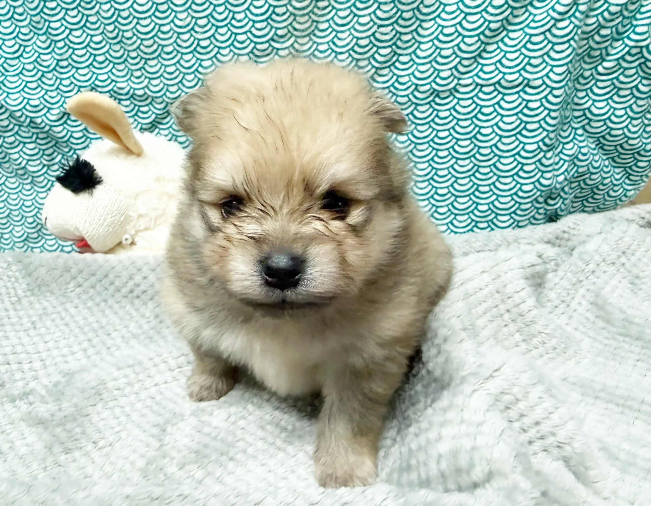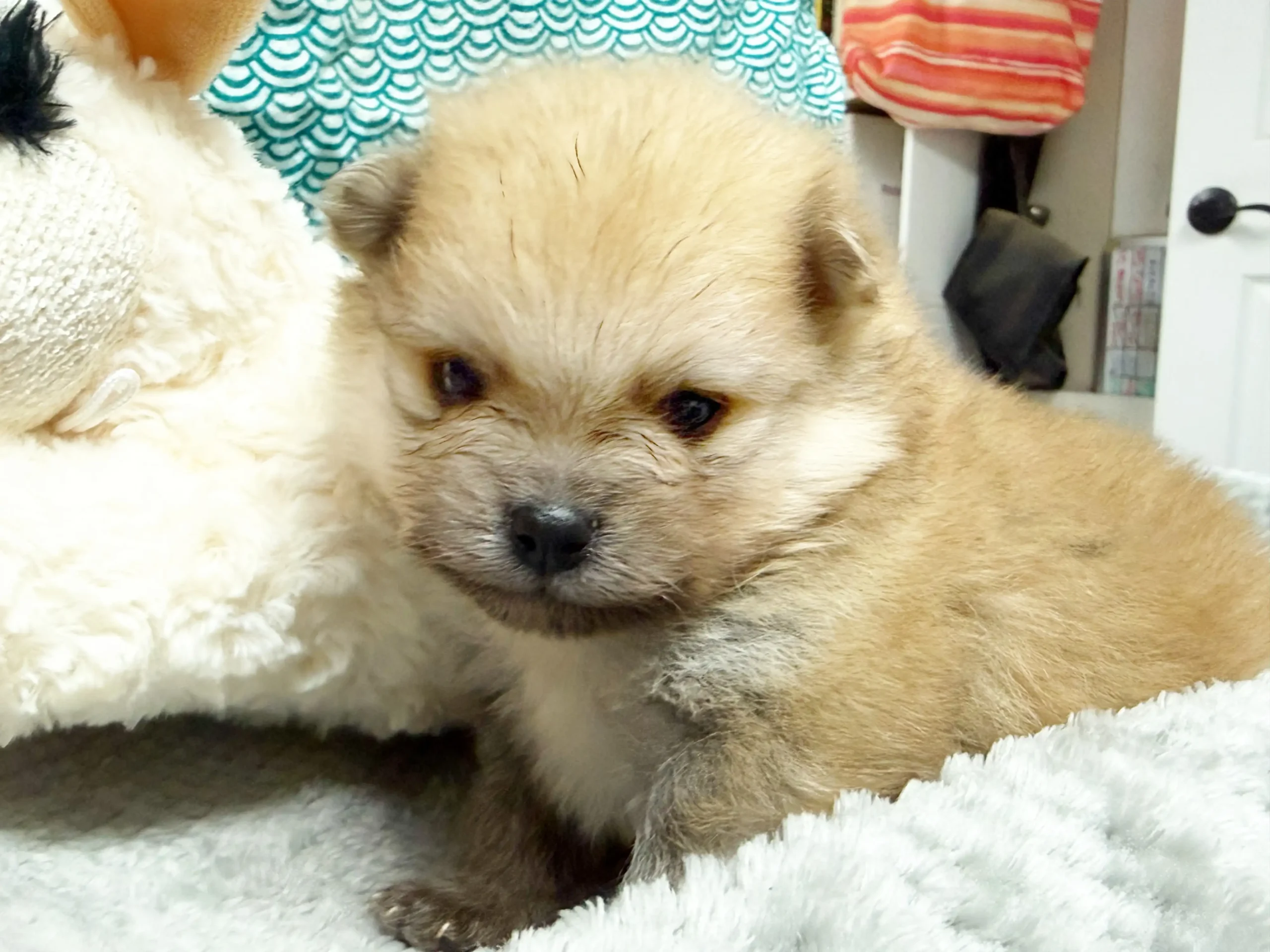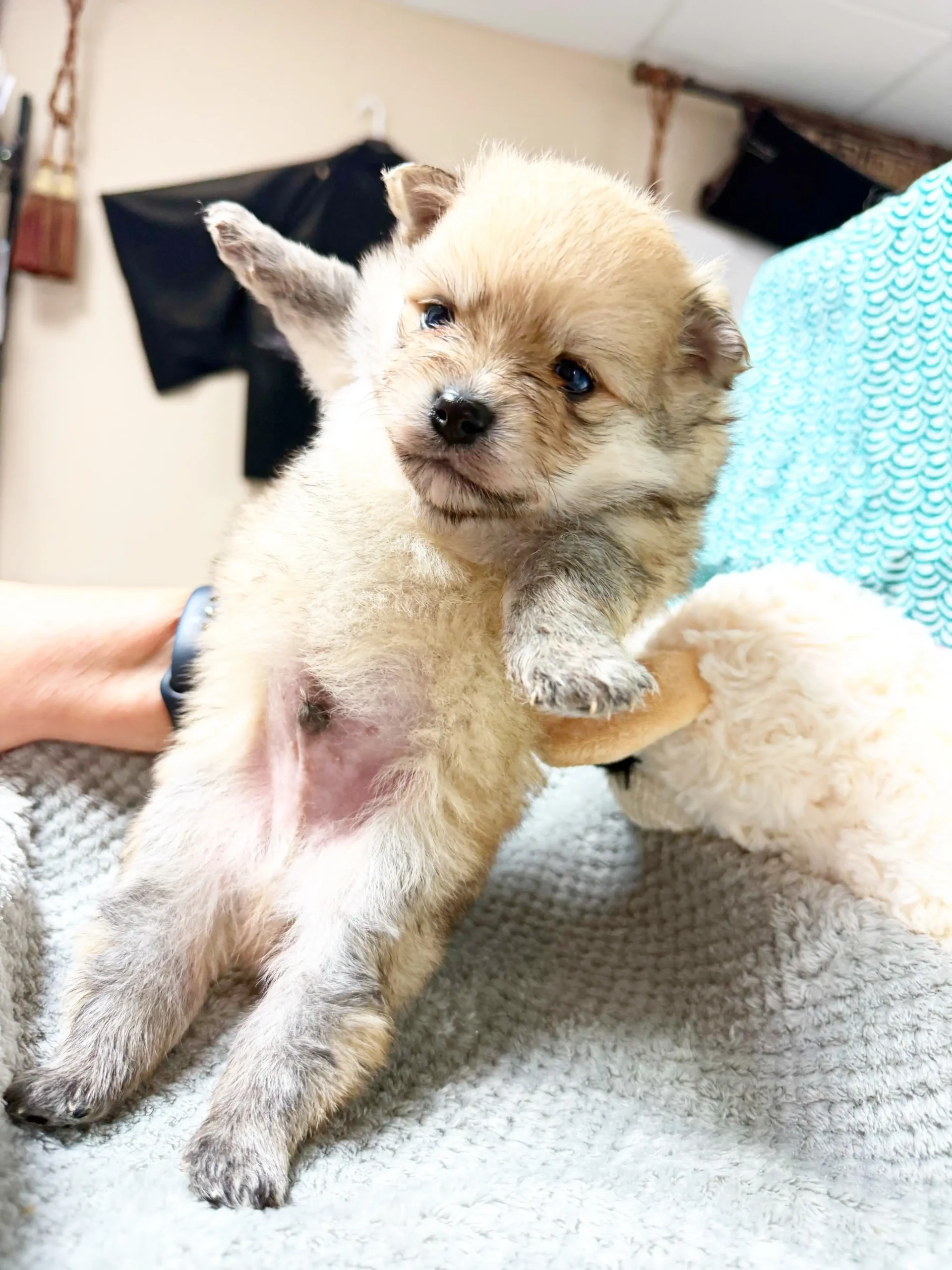 The Pomeranian puppies will not leave us until they are 8+ weeks old and totally weaned.